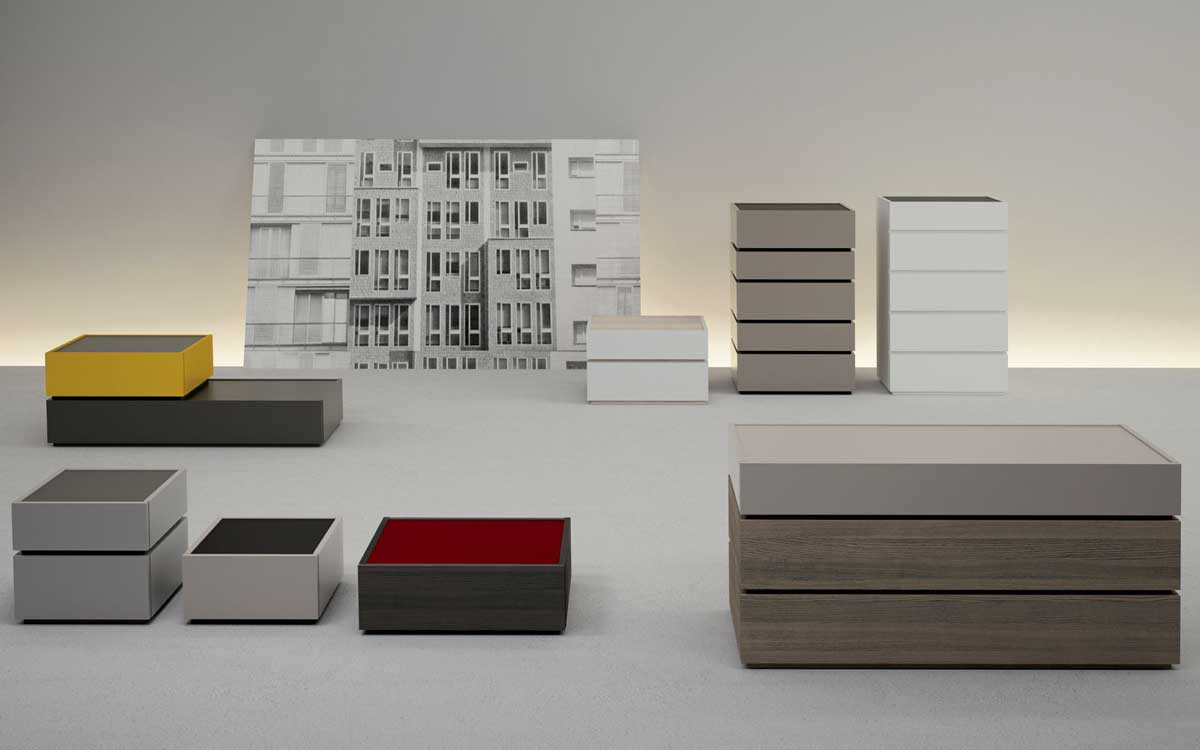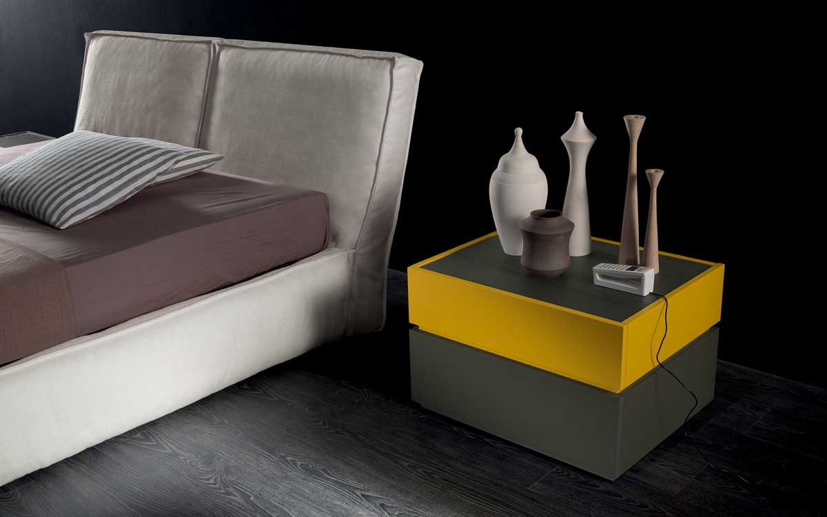 Dal design deciso e durevole nel tempo, con volumi puliti e linee eleganti facilmente abbinabili a qualsiasi letto, anche imbottito. E’ un programma caratterizzato dalla presenza dei 4 lati leggermente rialzati rispetto al top di finitura, ed è facilmente adattabile alle proprie esigenze di arredo grazie alla sua particolare compatibilità tra i vari pezzi.